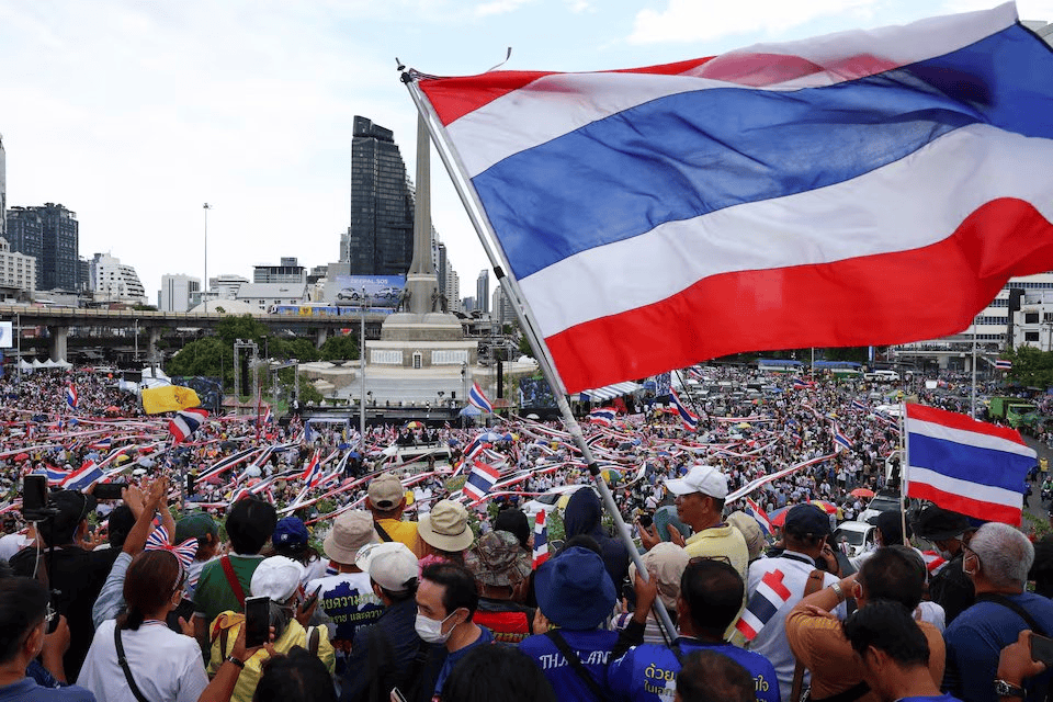 काठमाडौं । थाइल्यान्डको राजधानी बैंककमा प्रधानमन्त्री पेतोङतार्न शिनावात्राको राजीनामाको माग गर्दै हजारौं मानिस सडकमा उत्रिएका छन्। कम्बोडियाका पूर्वनेता हुन सेनसँग सिनावात्राको टेलिफोन कुराकानीको अडियो लिक भएपछि उनको राजीनामा माग गर्दै प्रदर्शन भएको हो।