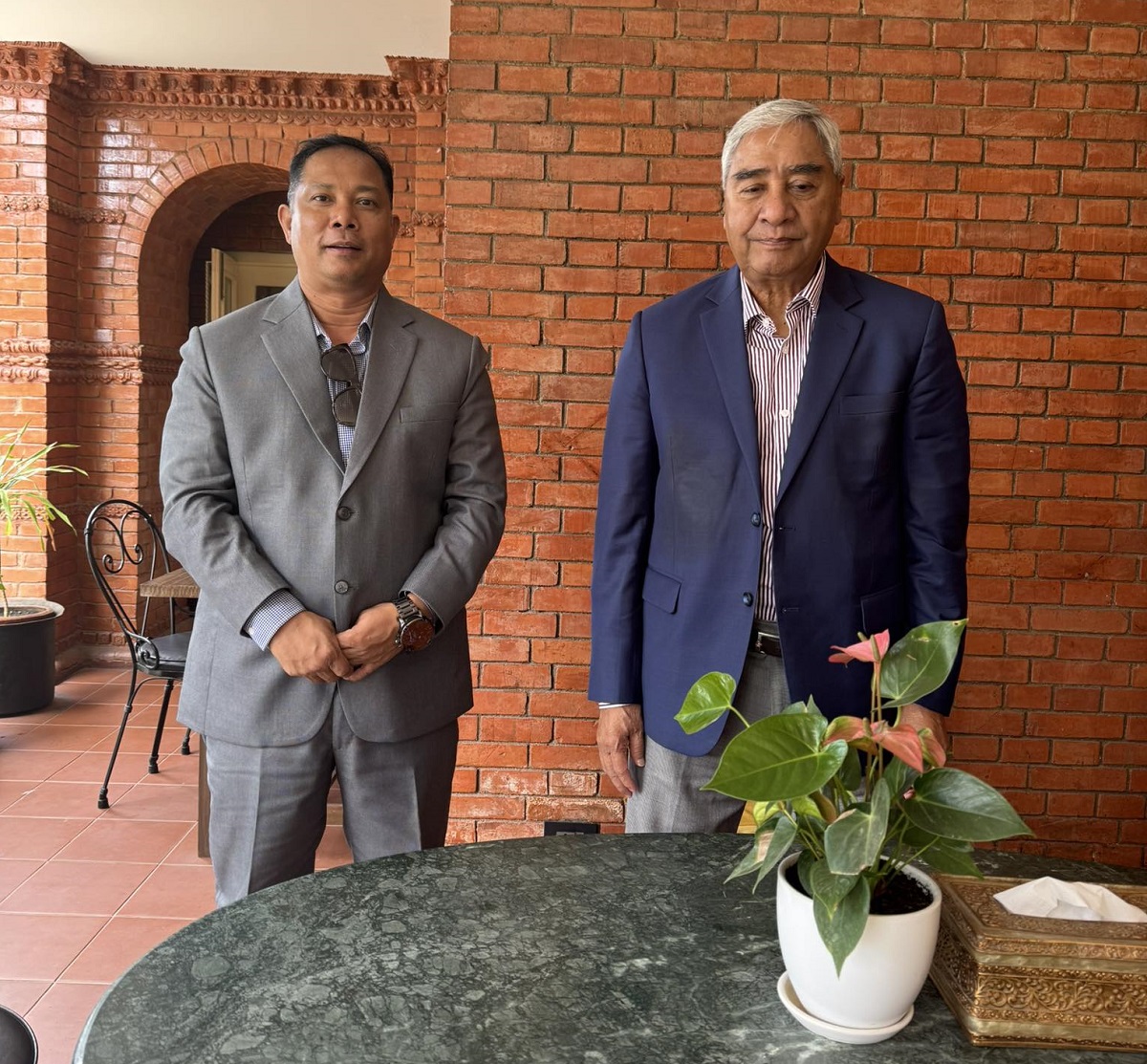 काठमाडौं । रञ्जिता श्रेष्ठलाई पार्टी अध्यक्षबाट हटाएको भोलिपल्टै नागरिक उन्मुक्ति पार्टीका संरक्षक रेशमलाल चौधरीले कांग्रेस सभापति शेरबहादुर देउवालाई भेटेका छन् । बिहीबार बिहान देउवा निवास बुढानिलकण्ठ पुगेका चौधरीले पछिल्लो समय सिर्जित राजनीतिक घटनाक्रमबारे कुराकानी भएको बताएका छन् ।
