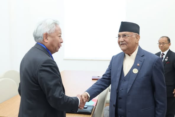 काठमाडौं । प्रधानमन्त्री केपी ओलीसँग बिहीबार एसियन पूर्वाधार लगानी बैकका अध्यक्ष जिन लिम्बुन्ले शिष्टाचार भेट गरेका छन् ।