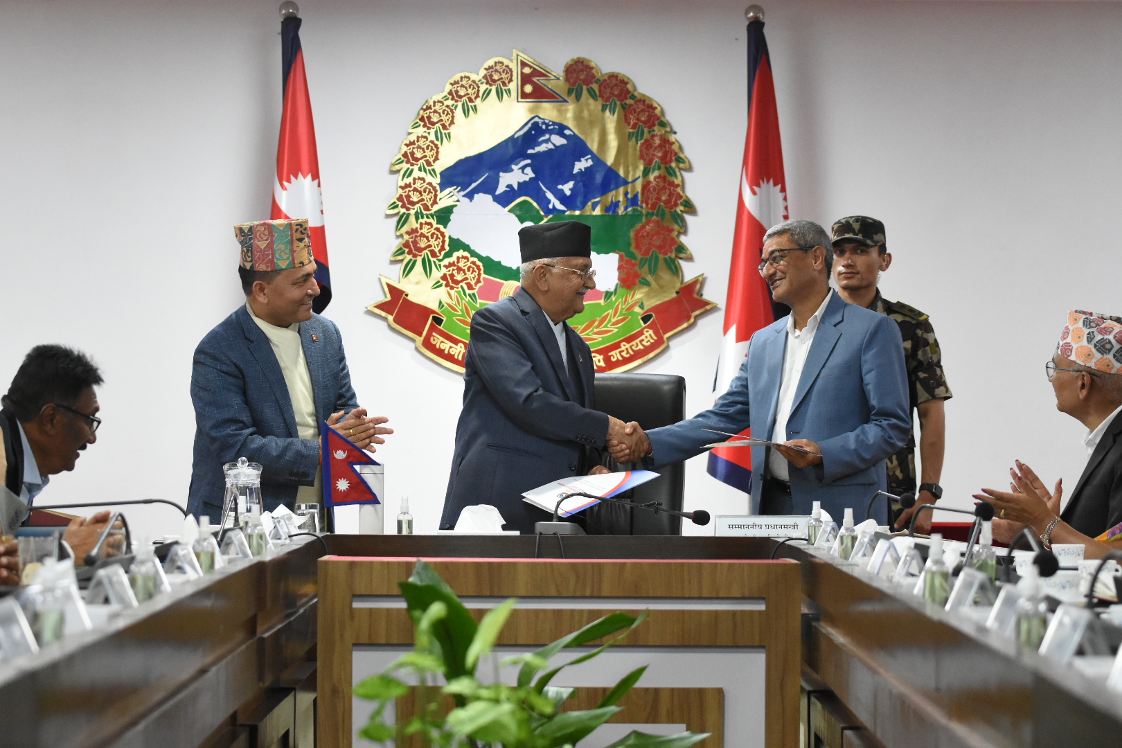 बिहीबार सिंहदरबारस्थित प्रधानमन्त्री तथा मन्त्रिपरिषद्को कार्यालयमा आयोजित कार्यक्रममा एक वर्षका लागि कार्यसम्पादन सम्झौता भएको हो ।