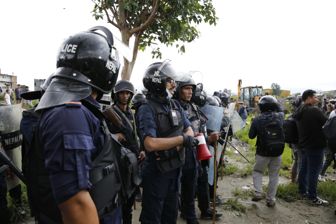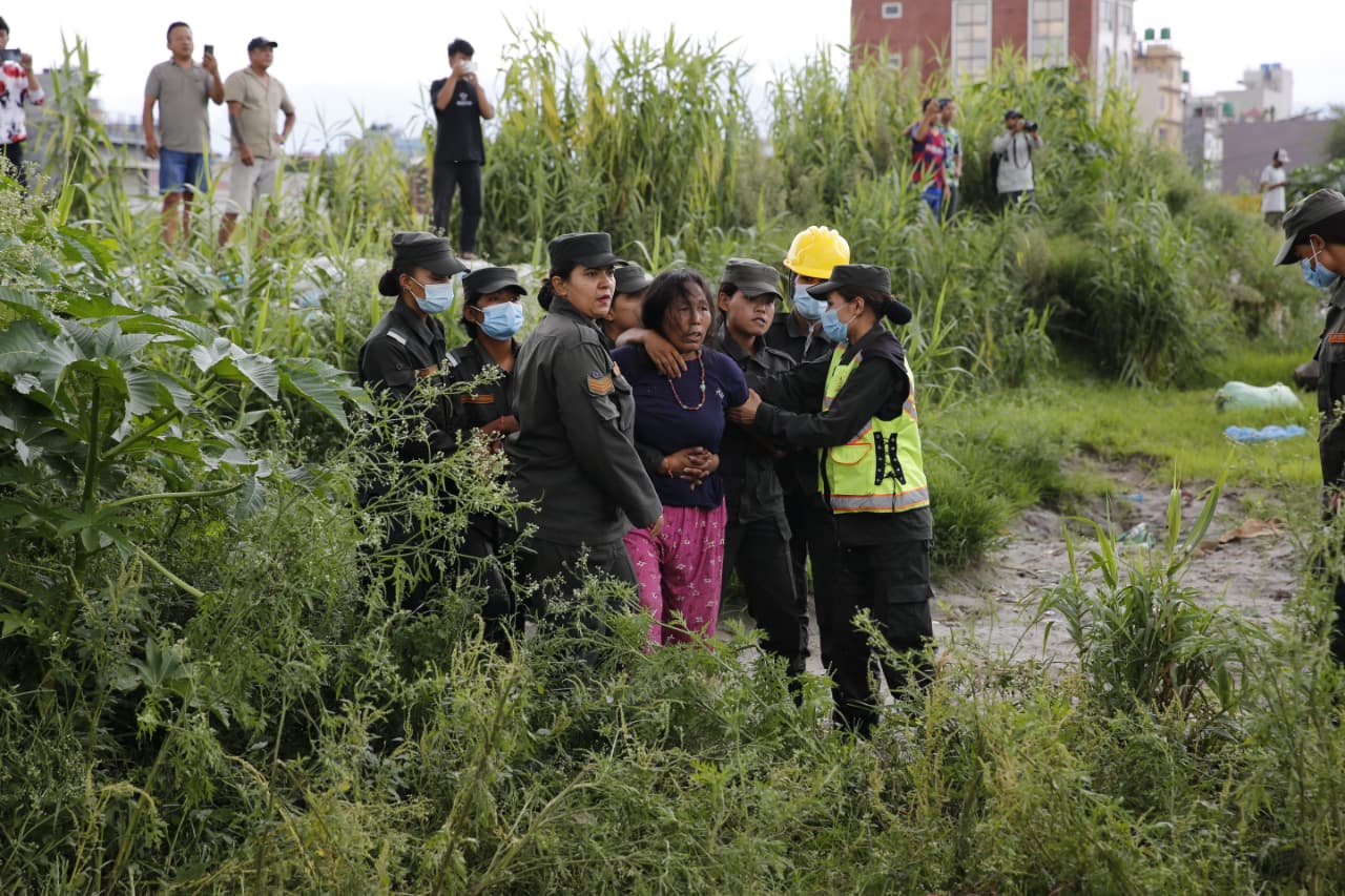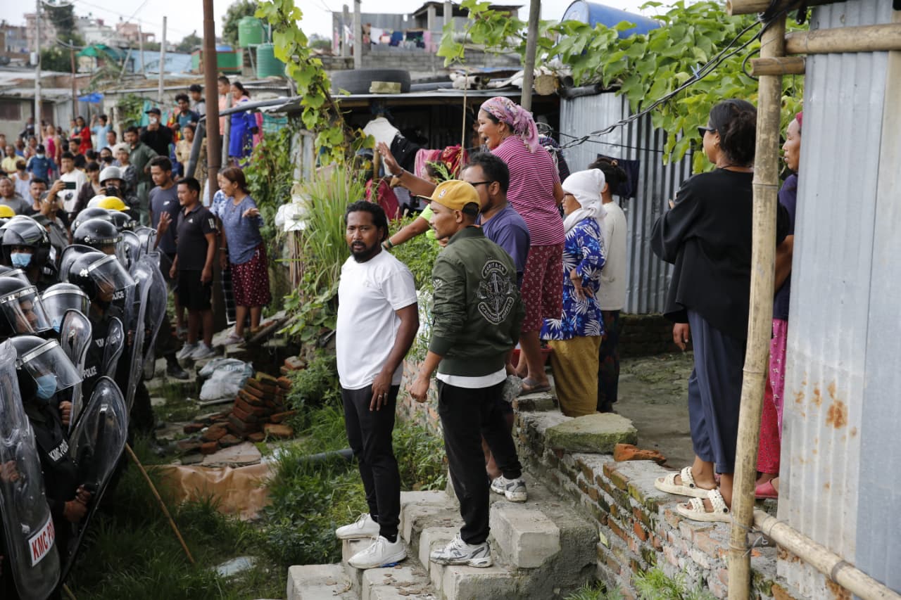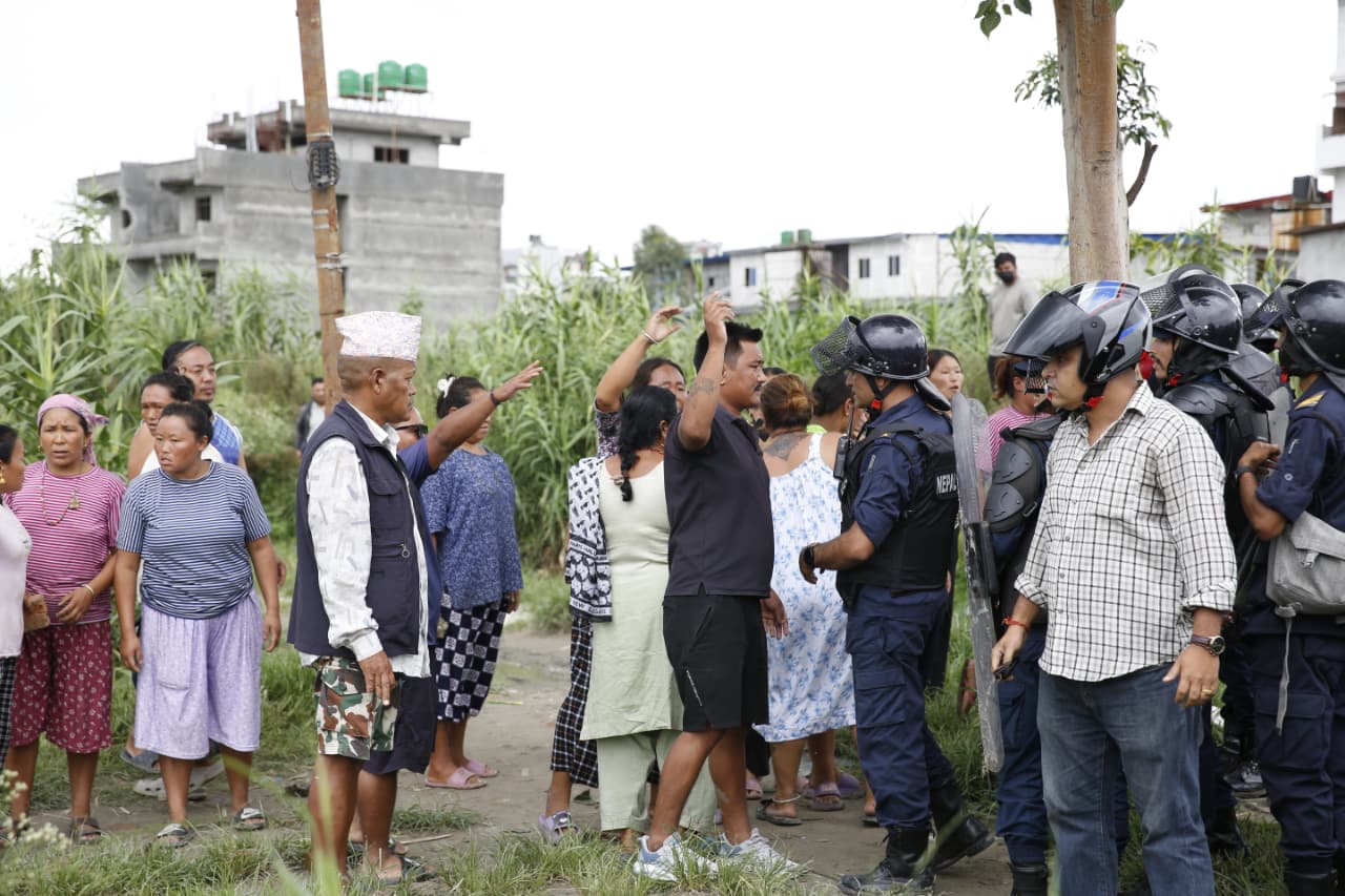 केही समयपछि नै स्थानीयले विरोध गर्दै काठमाडौं महानगर प्रहरी बल र नेपाल प्रहरीमाथि आक्रमणको प्रयास गरेका थिए । स्थानीय र सुकुम्बासी हुल बाँधेर आएर नाराबाजी र हुलहुज्जत गर्न थालेपछि बाक्लो सुरक्षाकर्मी परिचालन गरिएको छ ।