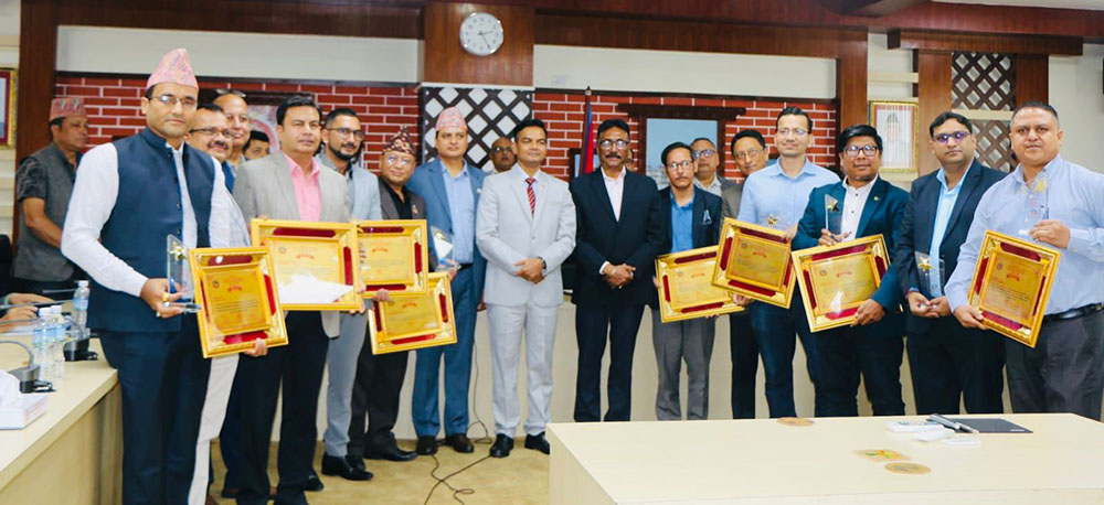 उत्कृष्ट काम गरेर सम्मानित हुने प्रतिष्ठानहरूलाई श्रम, रोजगार तथा सामाजिक सुरक्षा मन्त्री शरतसिंह भण्डारी सम्मानपत्र प्रदान गरे ।