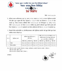 सोही अनुसार स्थानीय बजारमा मूल्य समायोजन गरिएको निगमले जनाएको छ । आइओसीले प्रत्येक महिनाको २ पटक मूल्य पठाउने गर्छ । सोही मूल्य अनुसार निगमले स्थानीय बजारमा मूल्य सामायोजन गर्ने गर्छ ।