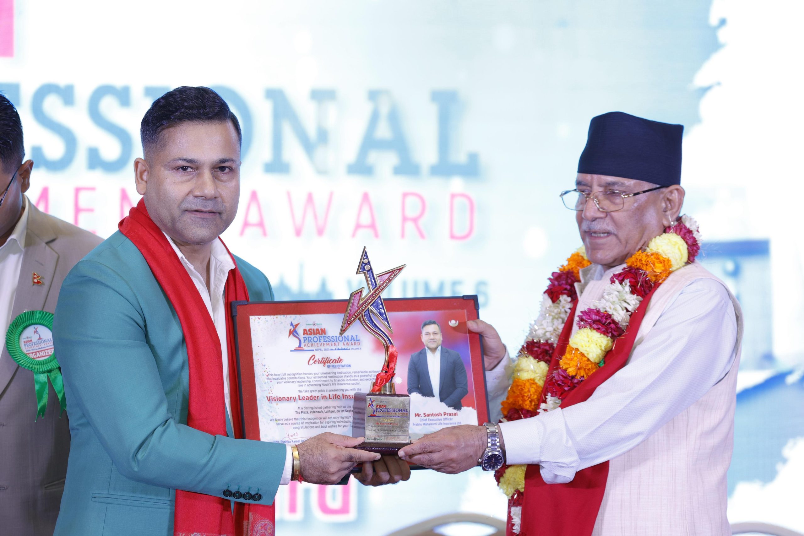 सोमबार एक कार्यक्रमका बीच प्रमुख अतिथि पूर्व प्रधानमन्त्री पुष्पकमल दाहाल प्रचण्डले प्रसाईलाई भिजनरी लिडर इन लाइफ इन्स्योरेन्स अवार्डबाट सम्मानित गरेका हुन्।
