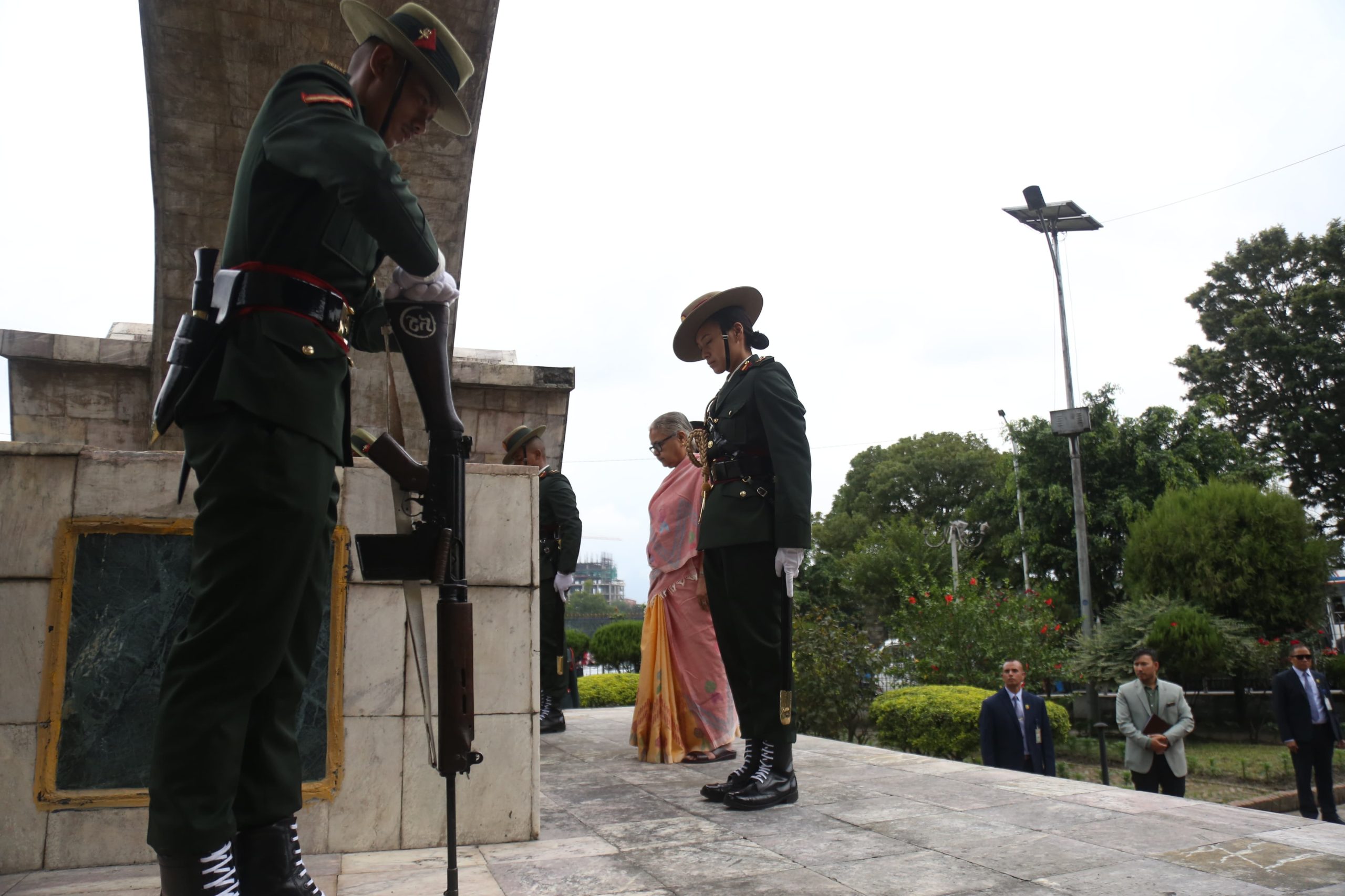 उनले देश र लोकतन्त्रका लागि बलिदान दिने शहीदहरूको सम्झनामा पुष्प अर्पण गर्दै उनीहरूको योगदानलाई स्मरण गरेकी छिन्।