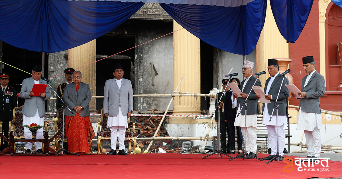 राष्ट्रपति भवन शीतलनिवासमा आयोजित एक समारोहमा नवनियुक्त मन्त्रीहरूलाई प्रधानमन्त्री सुशीला कार्कीको उपस्थितिमा राष्ट्रपति रामचन्द्र पौडेलले शपथ ग्रहण गराएका थिए।