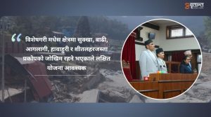 साथै सरकारले विपद् पछिको राहत वितरण तथा पुर्नस्थापनाको कार्यलाई विशेष प्राथमिकताको साथ तिनै तहका सरकारहरु मिलेर अगाडी बढाईने समेत बताए ।