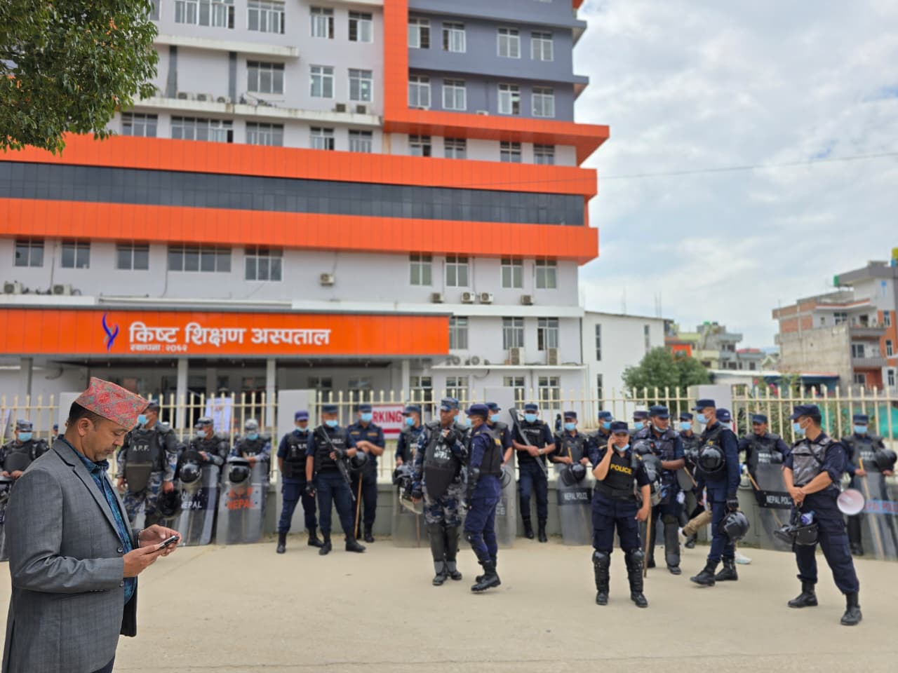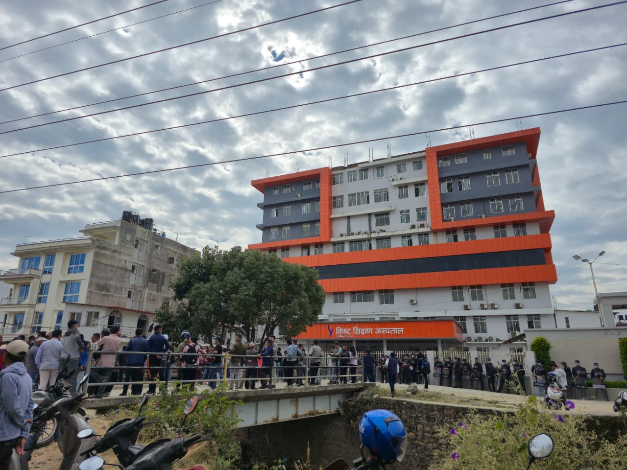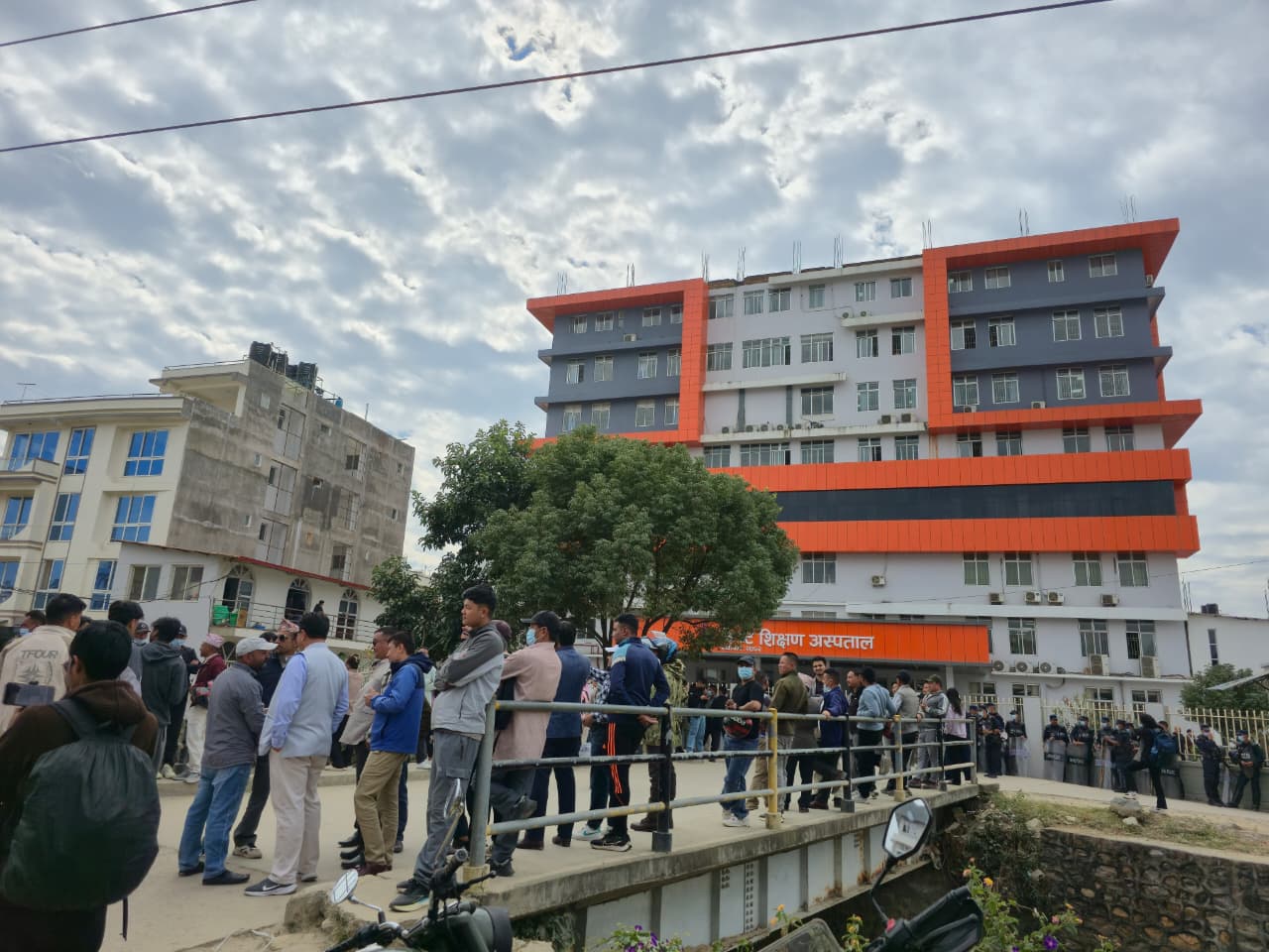 प्रहरीले अस्पताल घेरेर राखेको छ भने बाहिर ठूलो संख्यामा मृतकका आफन्त र परिवारका सदस्यहरु भेला भएका छन् ।
