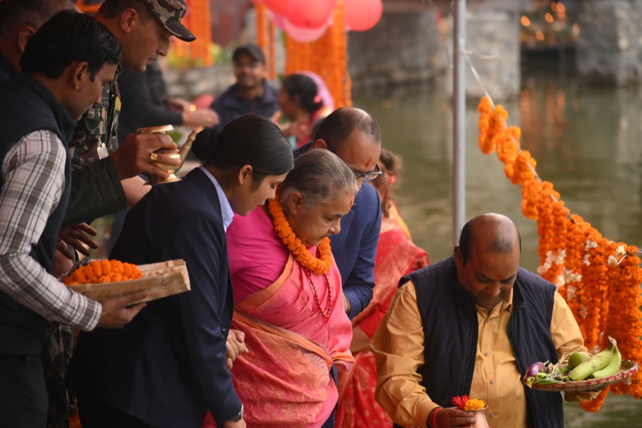 प्रधानमन्त्री कार्कीले छठ पूजा गर्दै देशको समृद्धिको कामना