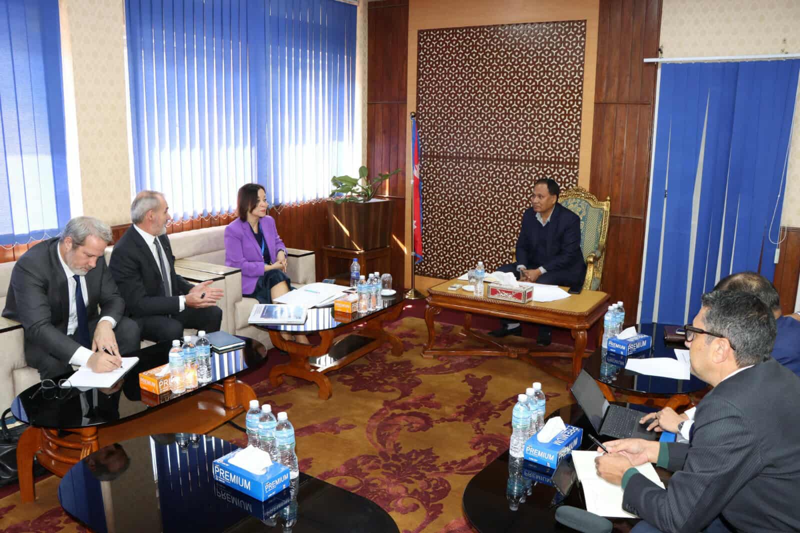एडिबी दक्षिण एसिया विभागका उपमहानिर्देशक सोना श्रेष्ठ, एडिबी नेपाल आवासीय नियोग प्रमुख आर्नोड कुश्वालगायतको टोलीसँग आज भएको भेटमा उनले वित्तीय व्यवस्थापन धेरै लामो समयदेखि चर्चामा रहेकाले तत्काल टुङ्गो लगाइनुपर्ने बताए ।