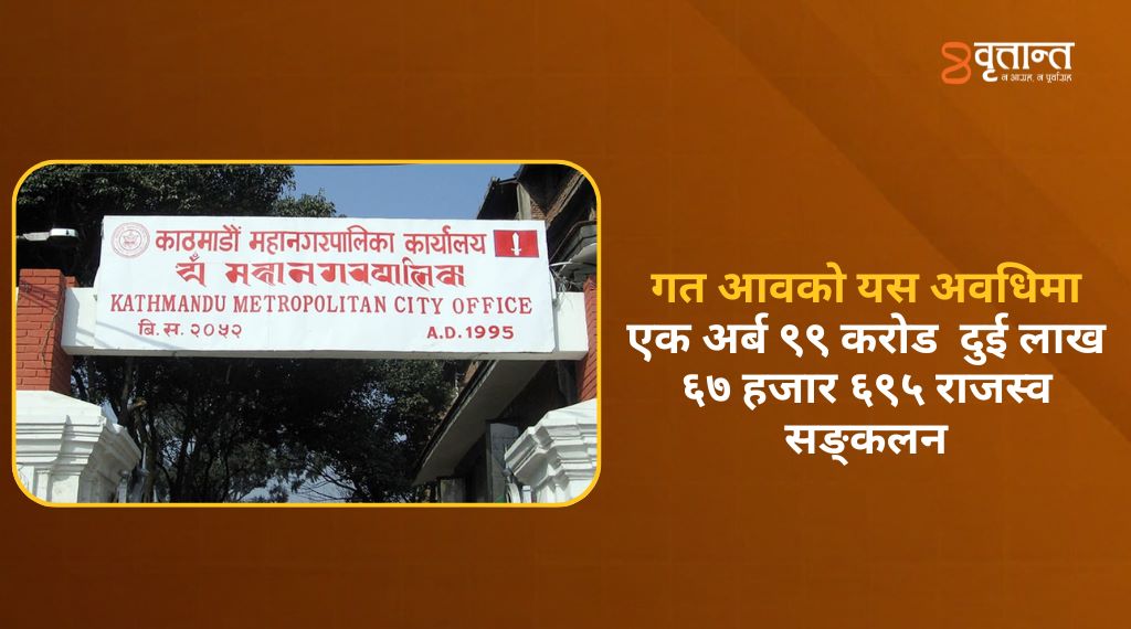 काठमाडौं । काठमाडौं महानगरपालिकाले चालु आर्थिक वर्षको कात्तिक मसान्तसम्ममा तीन अर्ब २२ करोड ४१ लाख २५ हजार १४९ राजस्व सङ्कलन गरेको छ । सोही अवधिमा गत आवमा रु तीन अर्ब १६ करोड ७६ लाख १४ हजार ६५७ सङ्कलन भएको थियो ।