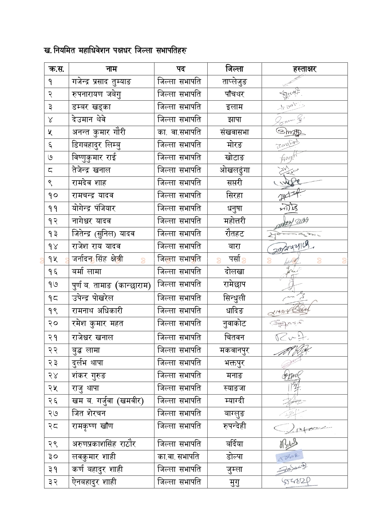 काठमाडौँ।नेपाली कांग्रेसका ४७ जिल्ला सभापति विशेष महाधिवेशनको विपक्षमा उभिएका छन्। विशेष महाधिवेशनको विपक्ष भने अहिले आमचुनावको तयारीमा जुट्नुपर्ने बेला हो भनेका छन्।सभापति शेरबहादुर देउवा र नेता शेखर कोइराला पक्षका जिल्ला सभापतिहरू विशेष महाधिवेशन पक्षमा नखुलेका हुन्।