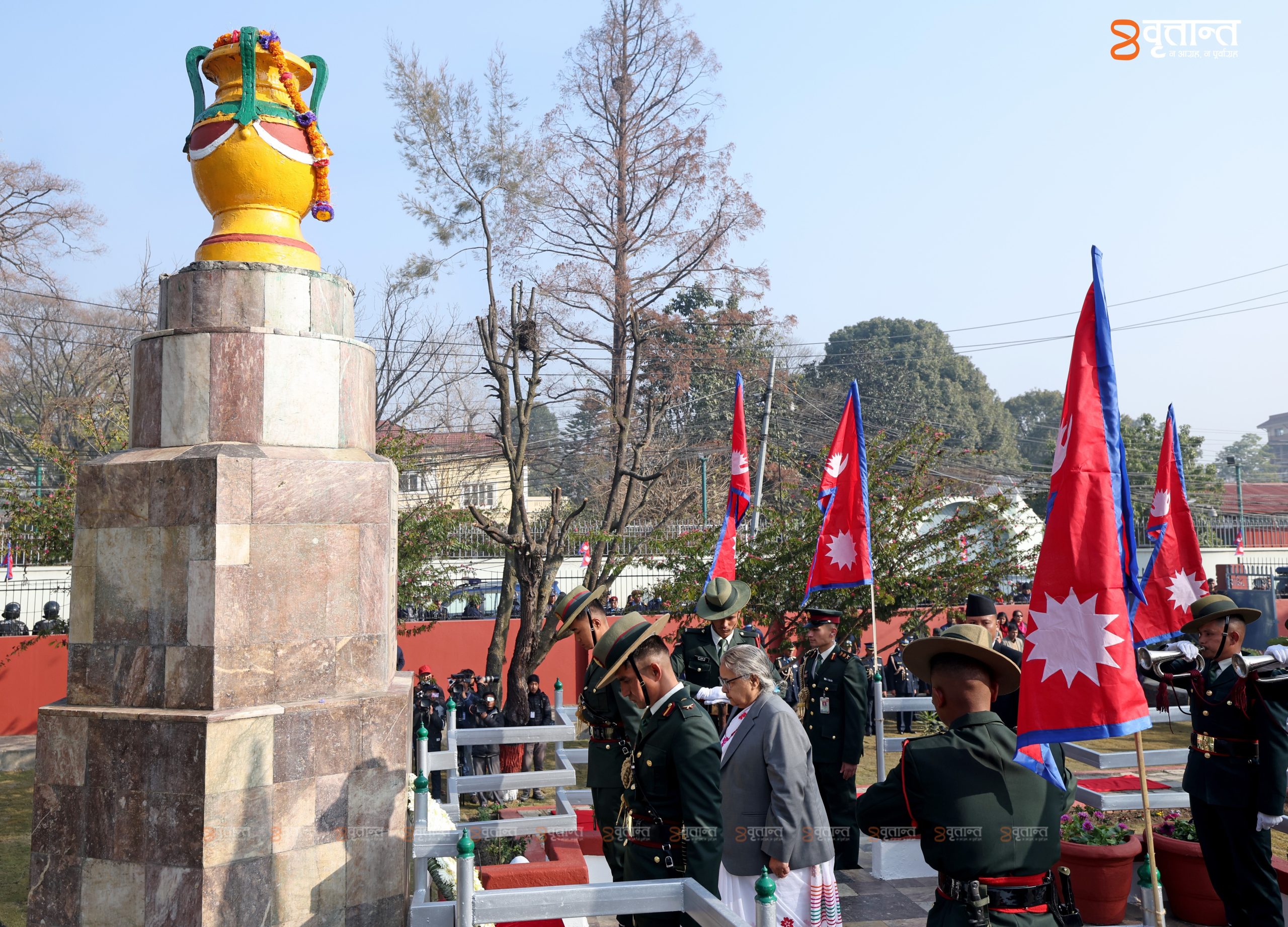 काठमाडौँ। प्रधानमन्त्री सुशीला कार्कीले सहिद सप्ताहको अन्तिम दिन लैनचौरस्थित सहिद स्मारक पुगेर ज्ञात–अज्ञात सहिदप्रति श्रद्धाञ्जली अर्पण गरेकी छन्। प्रजातन्त्र, राष्ट्र, स्वतन्त्रता तथा जनताको अधिकारका लागि विभिन्न कालखण्डमा भएका आन्दोलनमा ज्यान आहुति दिने वीर सहिदको सम्मानमा प्रधानमन्त्रीले श्रद्धाञ्जली अर्पण गरेकी हुन्।