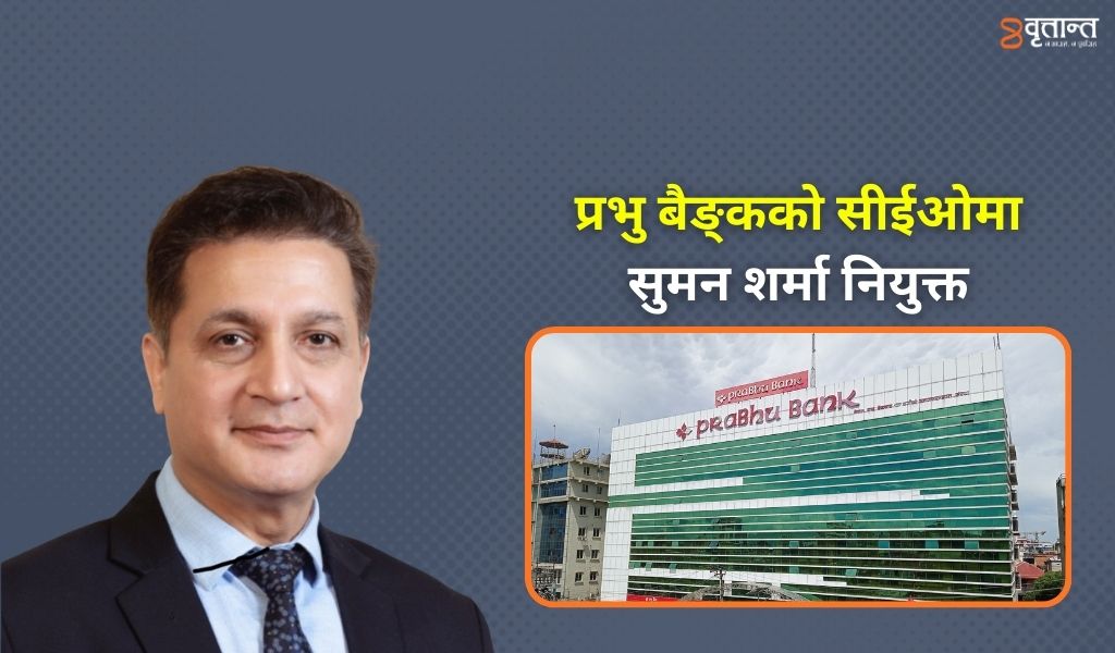 काठमाडौँ। प्रभु बैङ्कको प्रमुख कार्यकारी अधिकृत (सीईओ)को पदमा सुमन शर्मालाई नियुक्त गरिएको छ। बैंकको माघ २० गते बसेको सञ्चालक समितिको बैठकले शर्मालाई चार वर्षका लागि सीईओमा नियुक्त गर्ने निर्णय गरेको हो। नवनियुक्त सीईओ शर्मा आजदेखि नै आफ्नो कार्यभार सम्हाल्नेछन्।