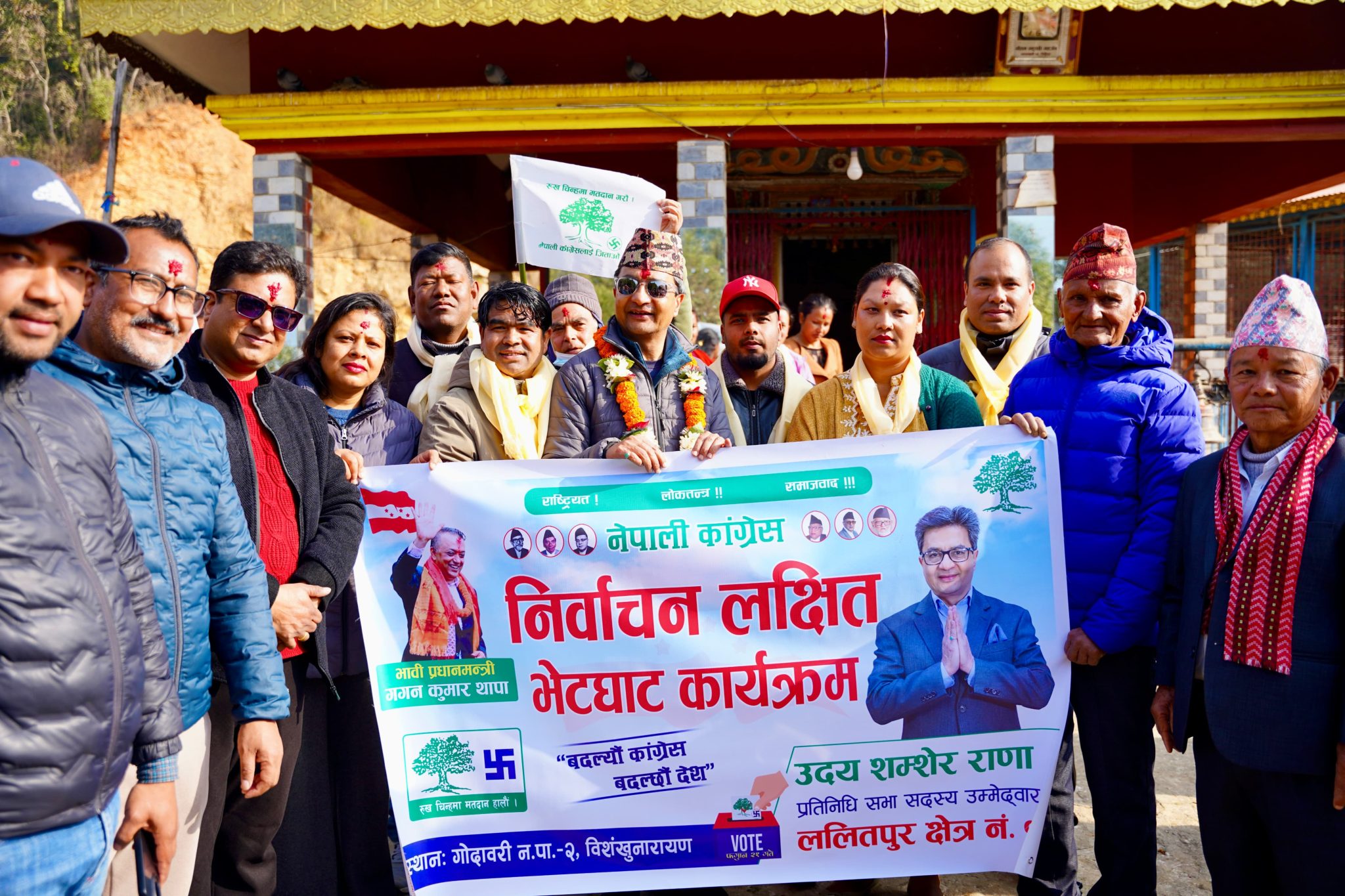 गोदावरी नगरपालिका २, विशंखुनारायणमा शुक्रबार आयोजित एक कार्यक्रमका बीच उनीहरूलाई कांग्रेस सहमहामन्त्री एवं ललितपुर १ का प्रतिनिधि सभा उम्मेदवार उदयशमशेर राणाले माला र टीका लगाएर पार्टीमा स्वागत गरे ।