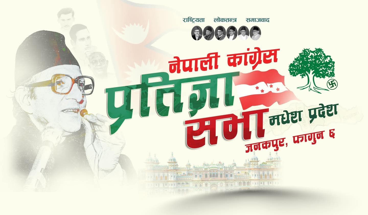 काठमाडौँ । नेपाली कांग्रेसले बुधबार धनुषाको जनकपुरधामस्थित तिरहुतिया गाछीमा बृहत् चुनावी सभा आयोजना गर्दैछ । दिउँसो १ बजे सुरु हुने सभामा चुनावी प्रतिज्ञापत्र पनि सार्वजनिक गरिने भएको छ । कांग्रेसले जनकपुरबाट चुनावी अभियान सुरु गर्न लागेको हो ।