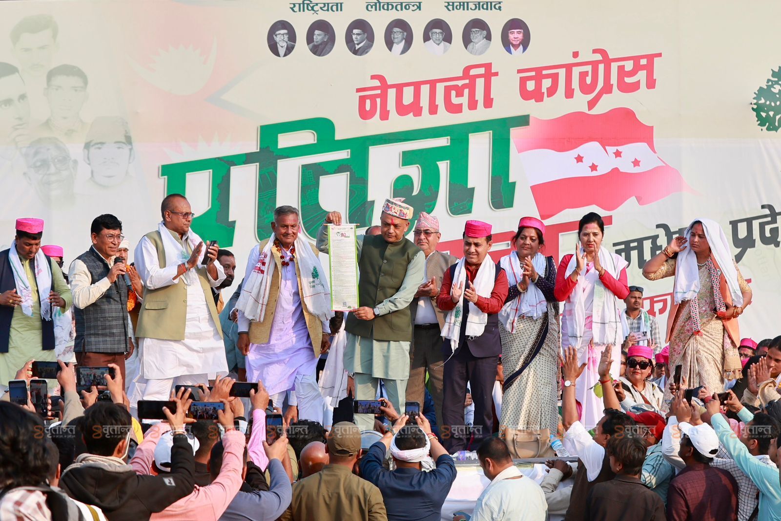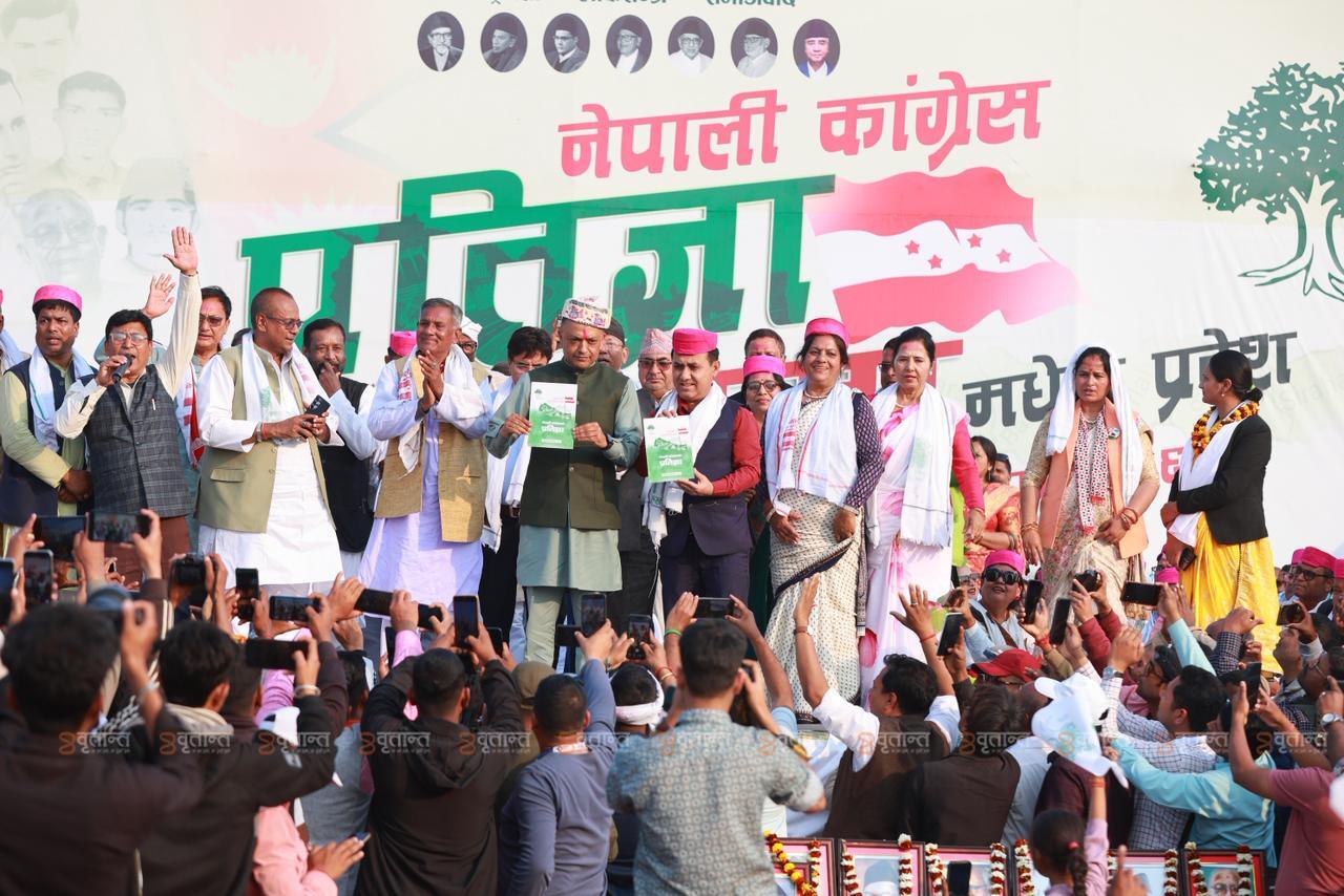 बुधबार पार्टी सभापति गगन थापा र उपसभापति विश्वप्रकाश शर्मा संयुक्त रूपमा जनकपुरको तिरहुतियागाछीमा आयोजित सभामा पार्टीको प्रतिज्ञापत्र सार्वजनिक गरेका हुन् ।
