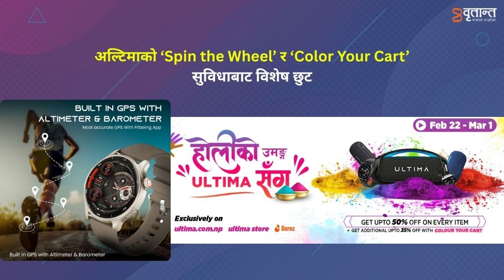 काठमाडौं। नेपालको प्रख्यात अडियो तथा वेयरेबल ब्रान्ड अल्टिमा लाईफ स्टाइलले रंगहरूको पर्व होलीलाई लक्षित गर्दै ‘होलीको उमंग अल्टिमा सँग ’ नामक विशेष अभियान घोषणा गरेको छ। कम्पनीका अनुसार उक्त अभियान १० फाल्गुनदेखि १७ फाल्गुनसम्म देशभर सञ्चालन हुनेछ।
