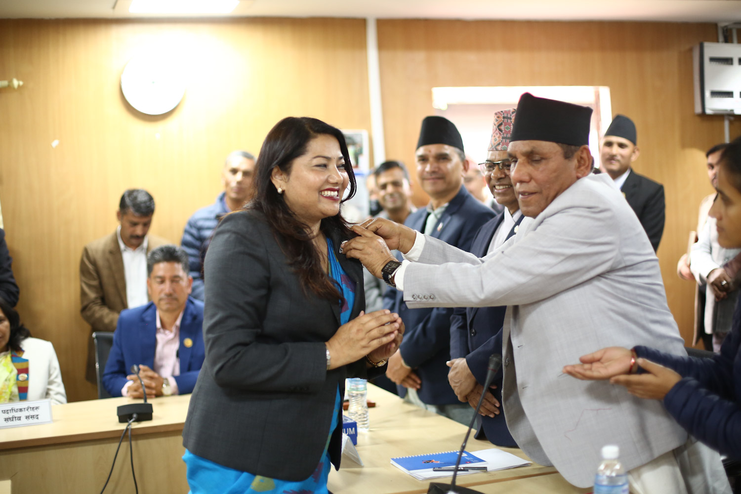 शपथ लिने सांसदमा कोशी प्रदेशबाट रोश्नी मेचे, सोमनाथ पोर्तेल, सुनिलबहादुर थापा, मधेश प्रदेशबाट रेखाकुमारी झा, धर्मेन्द्र पासवान, रन्जित कर्ण र महन्थ ठाकुर बागमती प्रदेशबाट गीता देवकाटा र प्रेमप्रसाद दंगाल छन् ।
