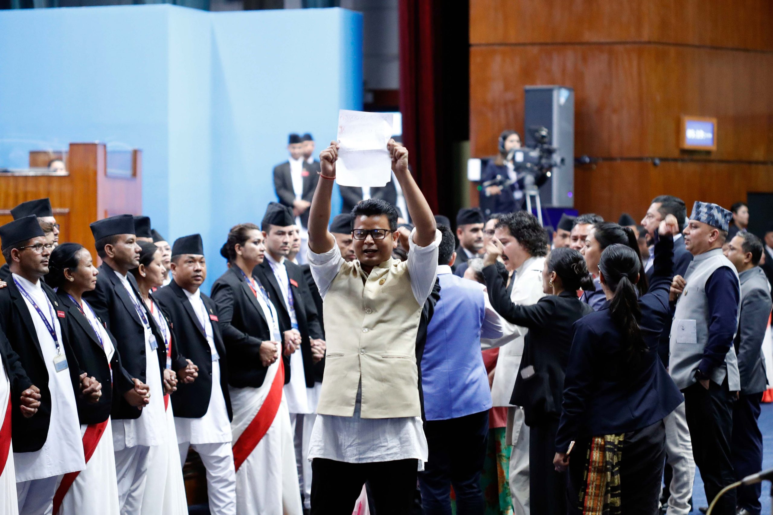 तत्कालीन गृहमन्त्री रमेश लेखक संलग्न भनिएको भिजिट भिसा प्रकरणबारे छानबिनको माग गर्दै रास्वपासहित विपक्षी दलहरूले संसद अवरोध गरेका थिए। उक्त विषयमा रास्वपाले (झन्डै दुई हप्ता) संसद अवरुद्ध भएको थियो। त्यस समय रास्वपाका सांसदहरुले रोष्टम घेराउ गर्नुका साथै विभिन्न क्रियकलापहरू गरेको थियो।