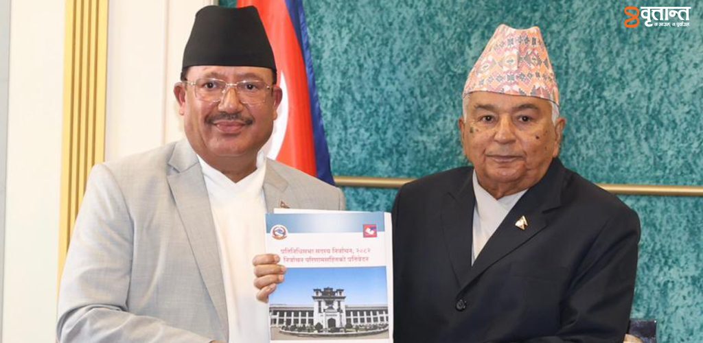बिहीबार राष्ट्रपति भवन शीतलनिवासमा आयोजित कार्यक्रममा निर्वाचन आयोगले तयार पारेको फागुन २१ गते सम्पन्न प्रतिनिधिसभा निर्वाचनसम्बन्धी प्रतिवेदन राष्ट्रपतिसमक्ष पेश गरिएको थियो। सो अवसरमा निर्वाचन आयोगका कार्यवाहक प्रमुख आयुक्त रामप्रसाद भण्डारीले प्रतिवेदन हस्तान्तरण गरेका थिए।