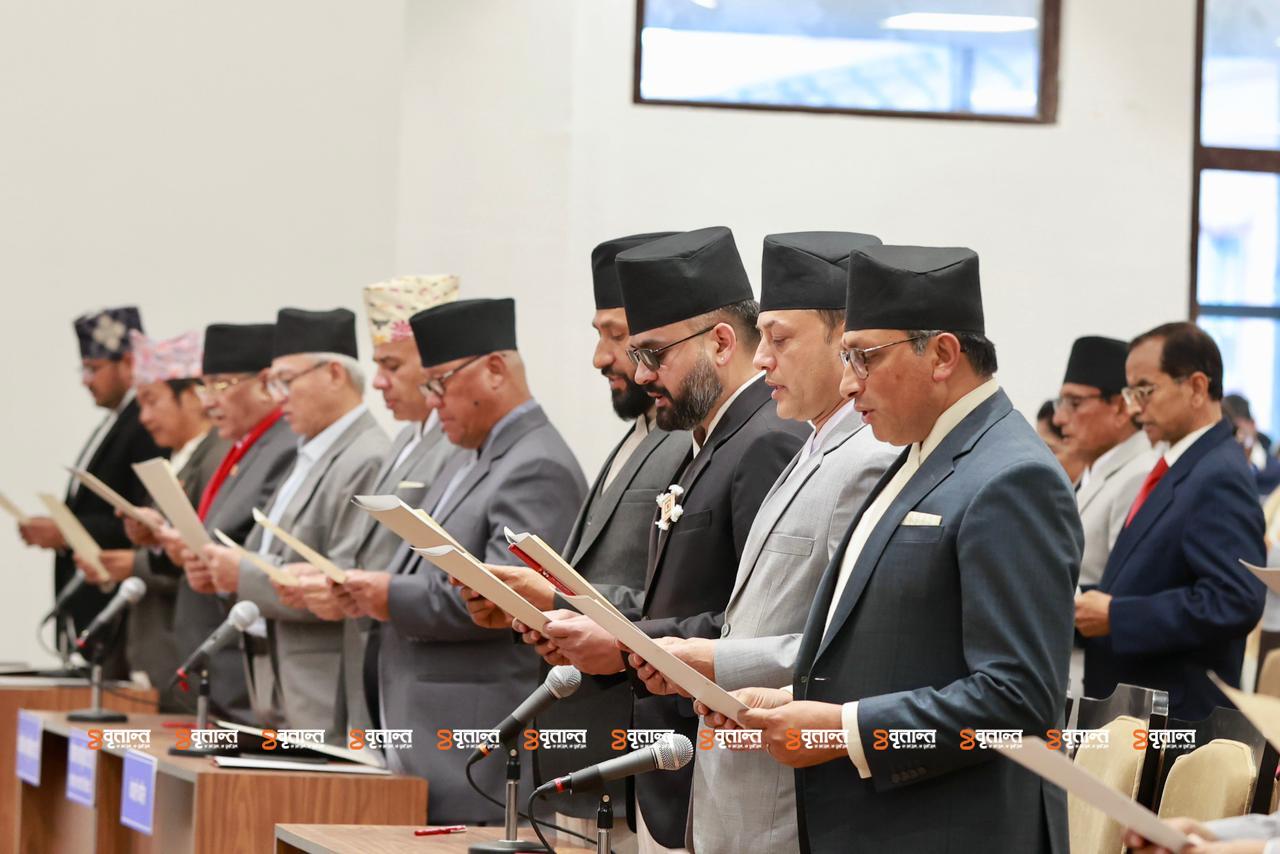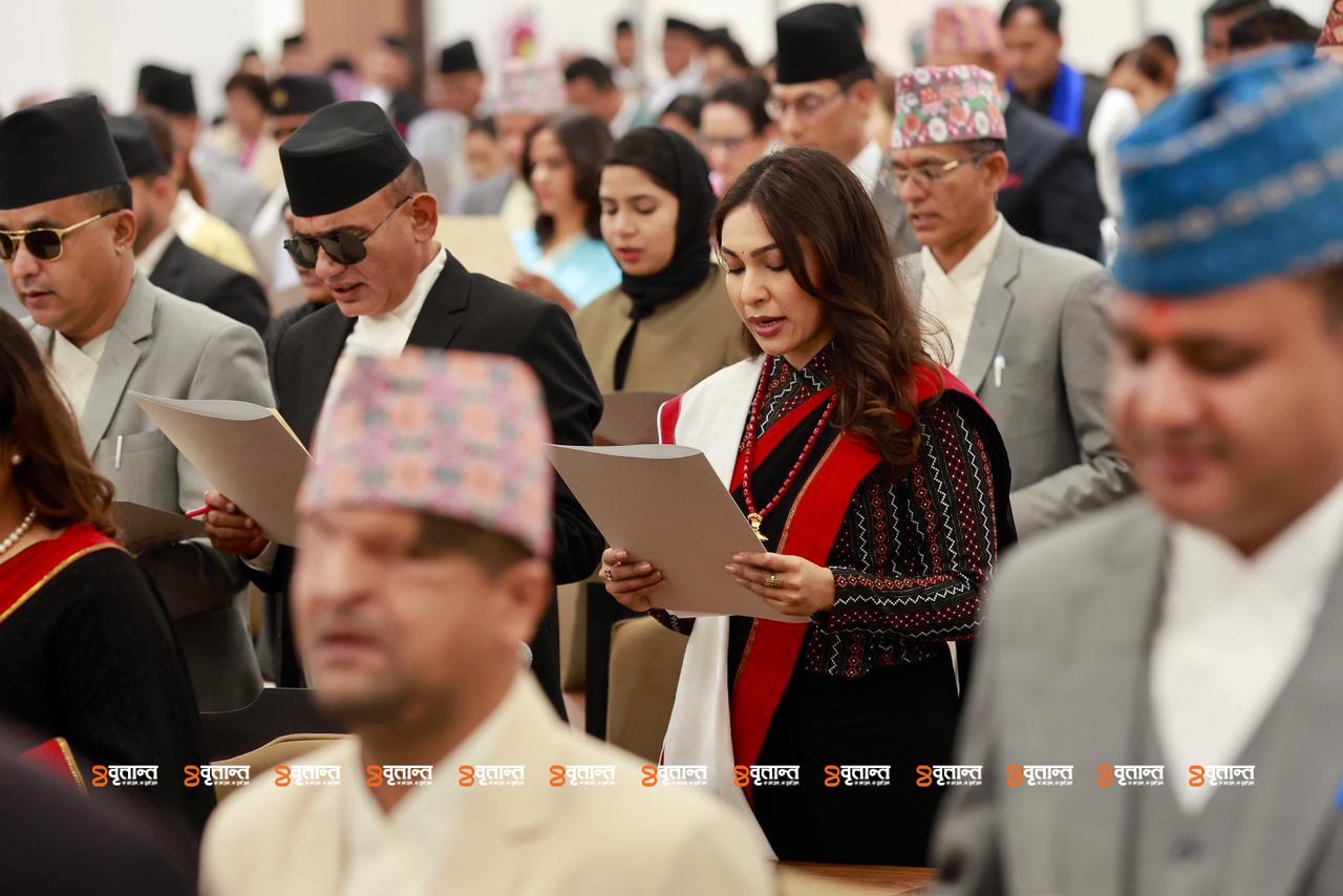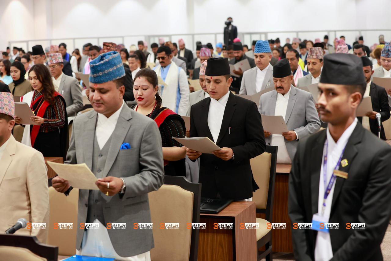 काठमाडाैं । प्रतिनिधि सभाका नवनिर्वाचित सदस्यहरुले बिहीबार ज्येष्ठ सदस्य अर्जुननरसिंह केसीबाट पद तथा गोपनीयताको शपथ लिएका छन्। सिंहदरबारस्थित बहुद्देश्यीय सभाहलमा २७४ सांसदहरूले शपथ लिएका हुन् ।