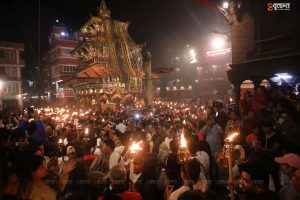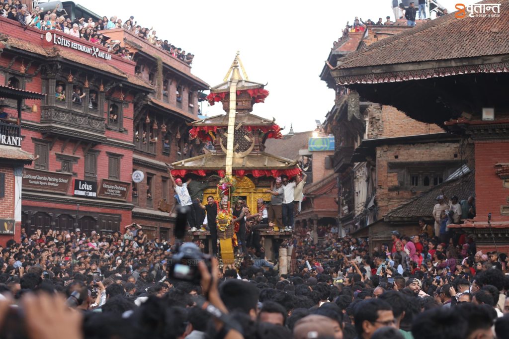 भक्तपुर। भक्तपुरमा आठ रात नौ दिनसम्म भव्य रूपमा मनाइने प्रसिद्ध बिस्केट जात्रा आज सम्पन्न हुँदैछ। गत चैत २७ गते तौमढीबाट भैरवको रथ तानेर सुरु भएको जात्रा आज अन्तिम चरणमा पुगेको हो।