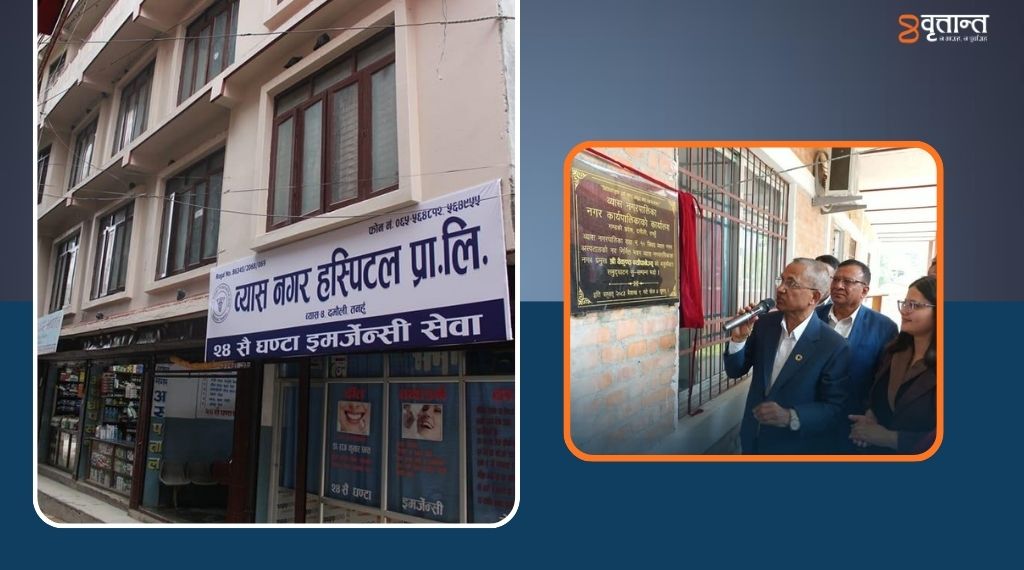 तनहुँ। व्यास नगर अस्पतालको १५ शय्याको नयाँ भवन निर्माण सम्पन्न भएको छ। व्यास नगरपालिका–१० दुम्सीबजारमा निर्माण गरिएको उक्त भवन बुधबार औपचारिक रूपमा शुभारम्भ गरिएको हो।