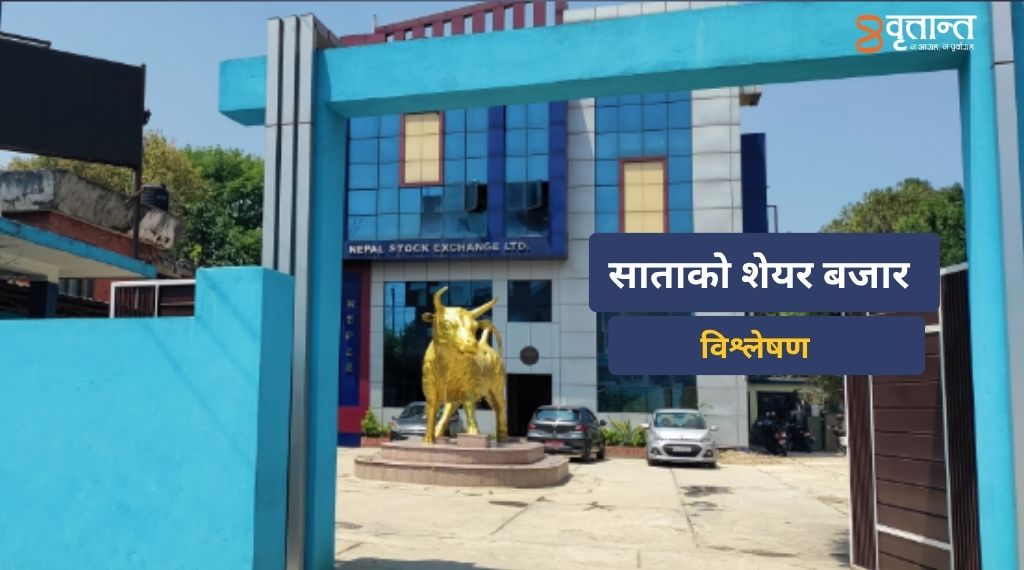 दैनिक शेयर कारोबारको समिक्षा गर्दा साताको पहिलो कारोबार दिन सोमबार नेप्से परिसुचक १३ दशमलव १७ अंकले घटेर दुई हजार आठ सय २५ दशमलव २३ बिन्दुमा खुम्चिएको थियो भने सेन्सिटिभ इन्डेक्स पनि तीन दशमलव २१ अंकले घटेर चार सय ७३ दशमलव ७१ बिन्दुमा खुम्चिएको थियो । दोस्रो दिन मंगलबार नेप्से परिसुचक १७ दशमलव ९१ अंकले घटेर दुई हजार आठ सय सात दशमलव ३१ बिन्दुमा खुम्चिदा सेन्सिटिभ इन्डेक्स पनि तीन दशमलव शुन्य सात अंकले घटेर चार सय ७० दशमलव ६३ बिन्दुमा खुम्चिएको थियो । तेस्रो दिन बुधबार पनि नेप्से परिसुचक दुई दशमलव ९५ अंकले घटेर दुई हजार आठ सय चार दशमलव १७ बिन्दुमा खुम्चिदा सेन्सिटिभ इन्डेक्स भने शुन्य दशमलव ६५ अंकले बढेर चार सय ७१ दशमलव २२ बिन्दुमा चढेको थियो । चौथो दिन बिहिबार नेप्से परिसुचक १७ दशमलव शुन्य एक अंकले घटेर दुई हजार सात सय ८७ दशमलव १५ बिन्दुमा खुम्चिंदा सेन्सिटिभ इन्डेक्स पनि दुई दशमलव ९४ अंकले घटेर चार सय ६८ दशमलव २७ बिन्दुमा खुम्चिएको थियो । पाँचौं दिन शुक्रबार भने नेप्से परिसुचक एक दशमलव ५४ अंकले बढेर दुई हजार सात सय ८८ दशमलव ७० बिन्दुमा चढेपनि सेन्सिटिभ इन्डेक्स भने शुन्य दशमलव २० अंकले घटेर चार सय ६८ दशमलव सात बिन्दुमा खुम्चिएको थियो ।