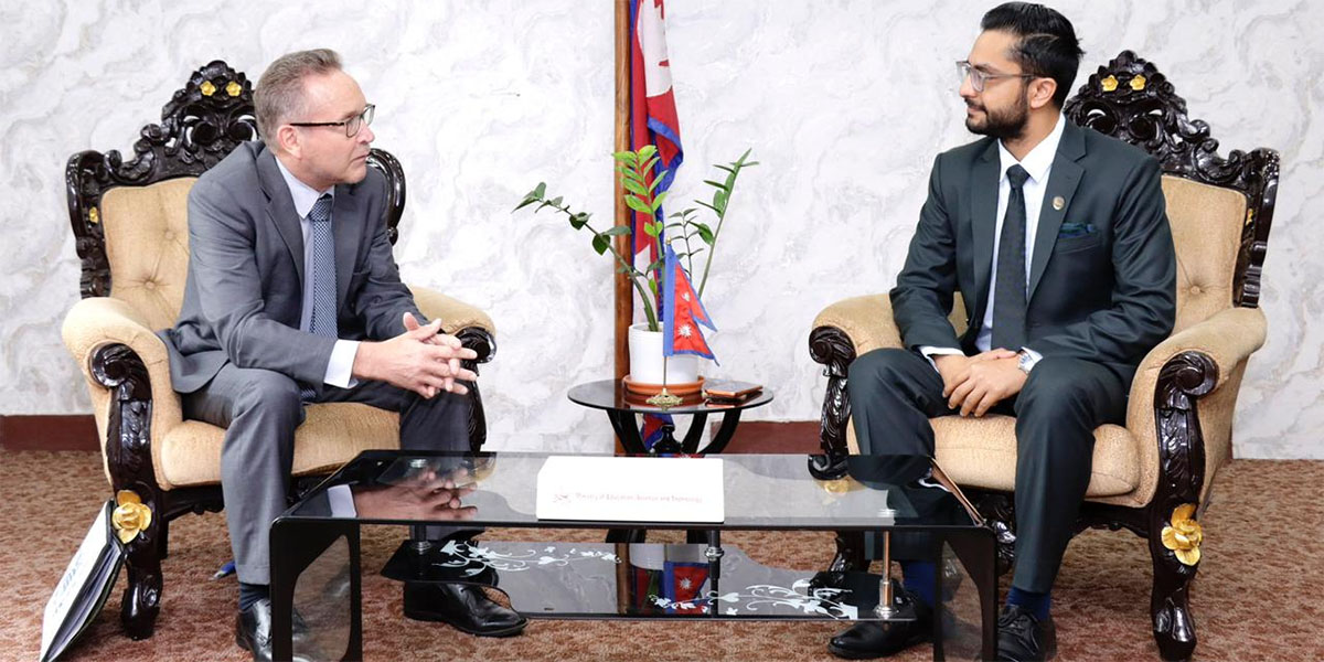 काठमाडौं । सरकारले विद्यालय शिक्षा सुधार तथा गुणस्तरीय शिक्षाको विकासका लागि फिनल्यान्ड सरकारसँग सहकार्य विस्तार गर्न चासो देखाएको छ।शिक्षा, विज्ञान तथा प्रविधिमन्त्री सस्मित पोखरेलसँग नेपालका लागि फिनल्यान्डका राजदूत पेट्री पुहाक्काले बिहीबार मन्त्रालयमा गरेको शिष्टाचार भेटवार्ताका क्रममा मन्त्री पोखरेलले शिक्षा क्षेत्रमा सहकार्य विस्तारको प्रस्ताव राखेका हुन्।